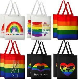 12 Pieces Rainbow Flag Canvas Tote Bags Pride Day Gift Bags Bulk Canvas Handbag for LGBTQ Pride Party Supplies (Pride Day)